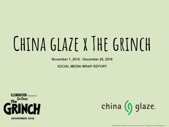 This is a deck that I built highlighting the China Glaze x Grinch social media campaign. My role in this effort was executing the campaign from start to finish. I managed the Facebook advertising spend, wrote the social media copy, and handled day-to-day community management.