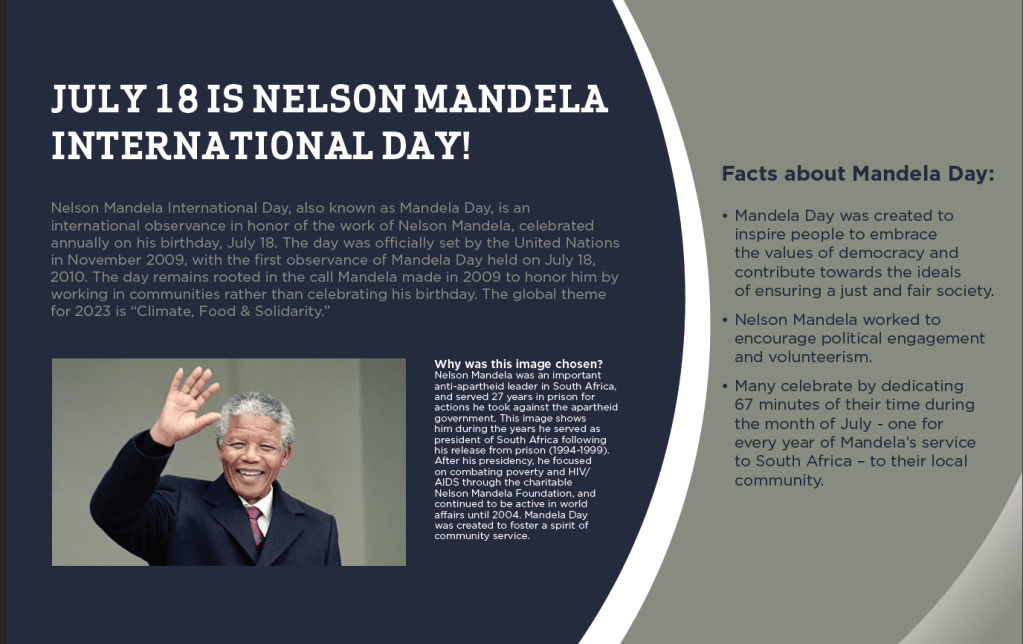 I write and edit monthly Diversity Equity & Inclusion posters sent to Gelson’s corporate offices and all 27 stores. The items are posted in the breakrooms.