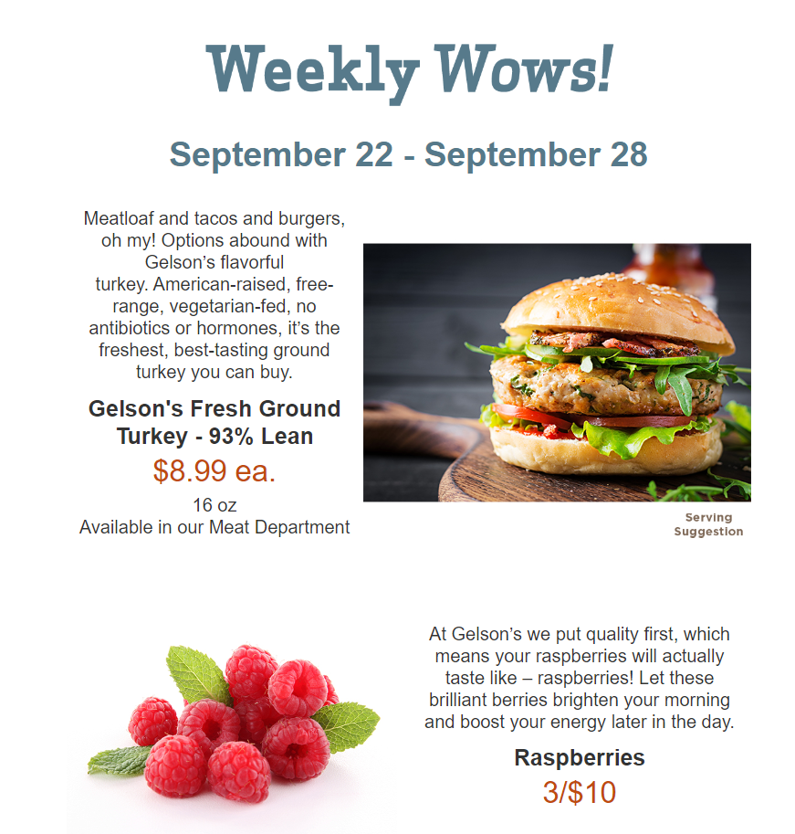 Given the task of coming up with a catchy name for a sale featuring Gelson’s low-priced items, I came up with Weekly Wows because it’s fun, eye-catching, and many of the prices make one say, “Wow!” Signs are featured in stores and online.