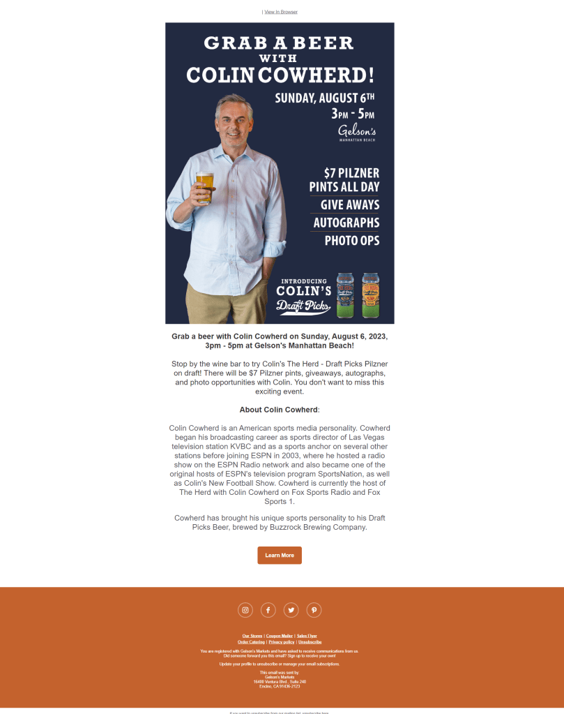 Email Sample: Grab a Beer with Colin Cowherd